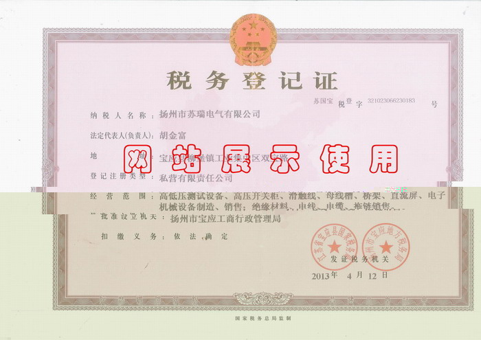 蘇瑞電氣稅務(wù)登記證